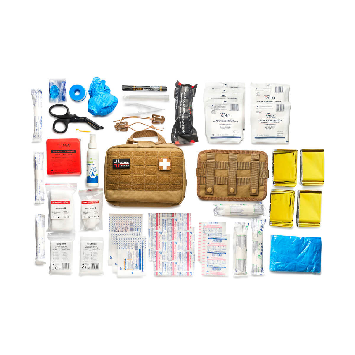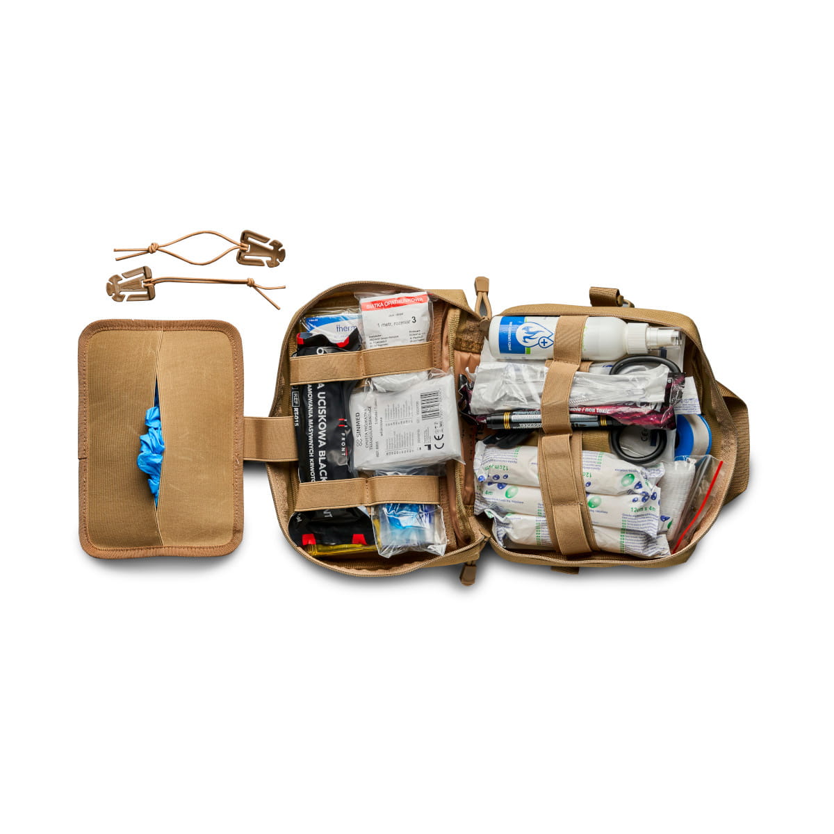 - Apteczka wraz z panelem rzepowym systemu Molle – 1 szt.