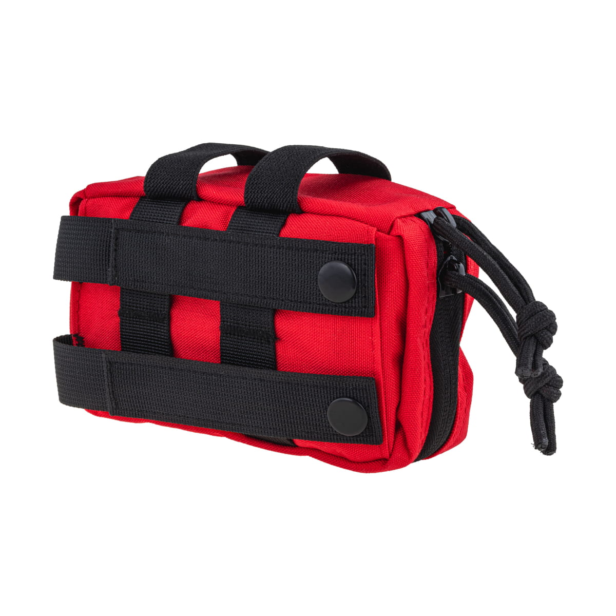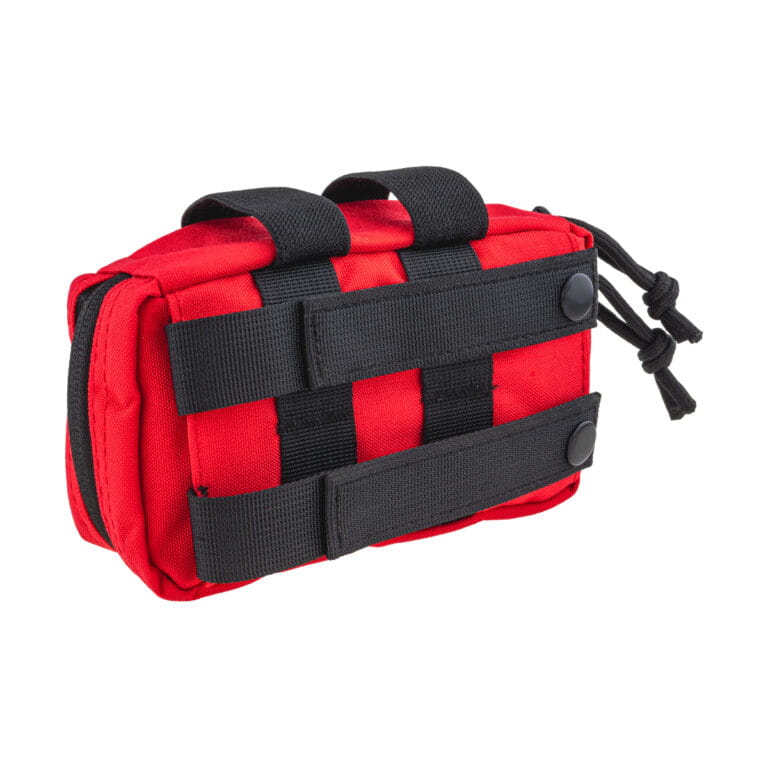 Na przedniej stronie znajduje się rzep z otworami wykonanymi w technologii laser cut, kompatybilny z systemem MOLLE, oraz duża gumowa naszywka z nazwą zestawu. Z tyłu umieszczono dwa odpinane paski umożliwiające mocowanie saszetki np. do pasa lub innego elementu wyposażenia z systemem MOLLE. Na spodzie znajduje się elastyczny uchwyt na opaskę uciskową. Wnętrze saszetki wyposażono w wytrzymałe gumy służące do stabilnego rozmieszczenia elementów medycznych.
